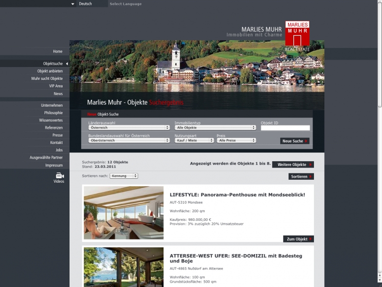WEBSEITE: www.muhr-immobilien.at Webseite der Salzburger Luxus-Immobilien Marklerin Marlies Muhr.